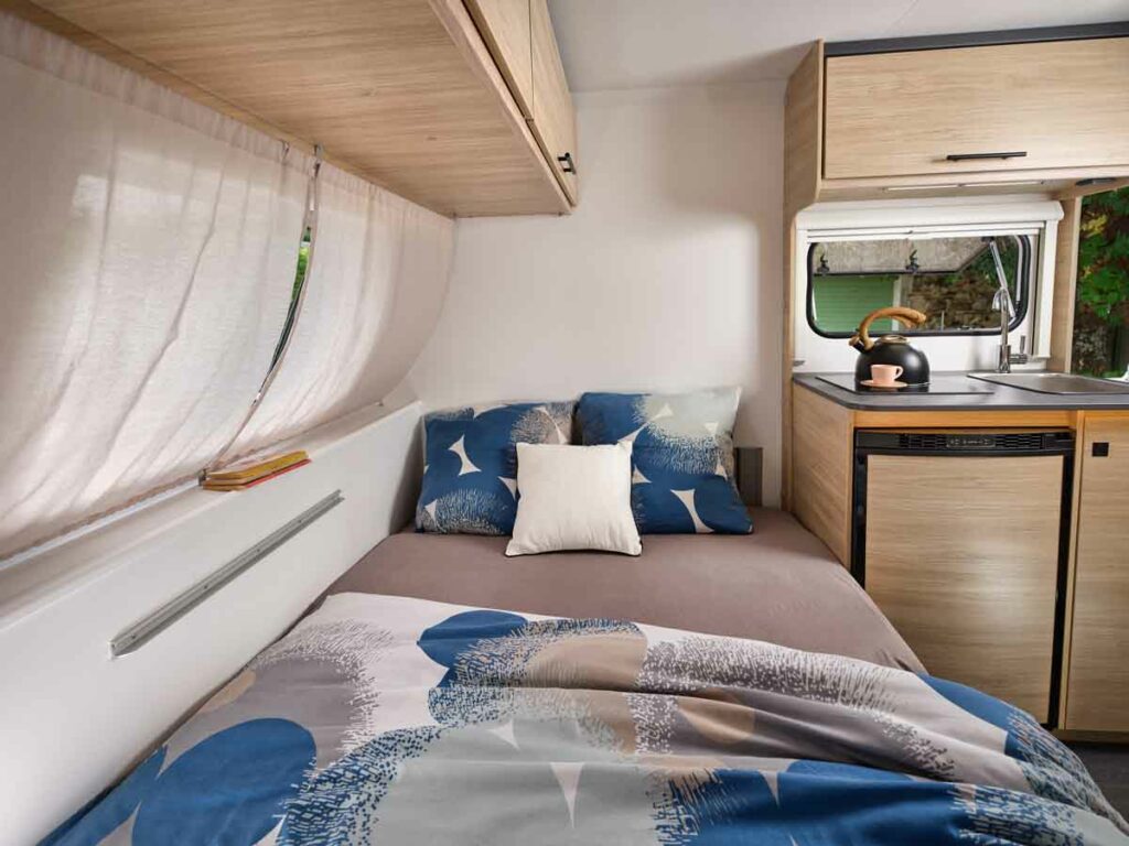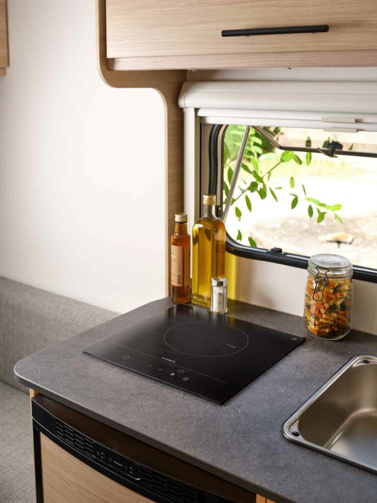Ny familiecaravan med 4 pladser, der har en totalvægt på kun 750 kg, med 100% elektrisk udstyr. Derudover tilbyder den eksklusivt – og som standard – et helt nyt koncept for tilslutningsmuligheder.